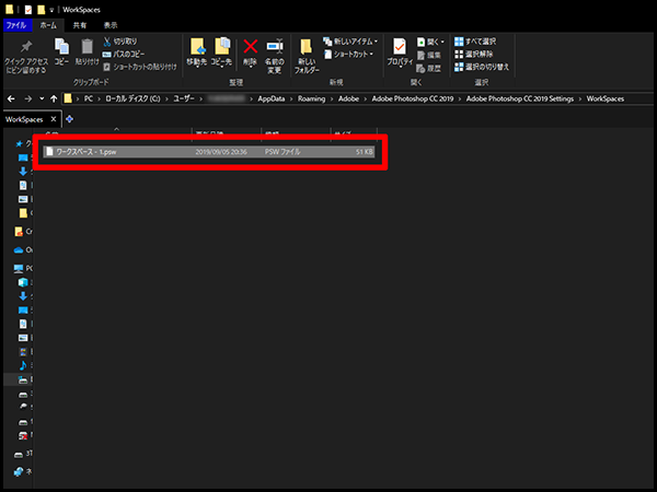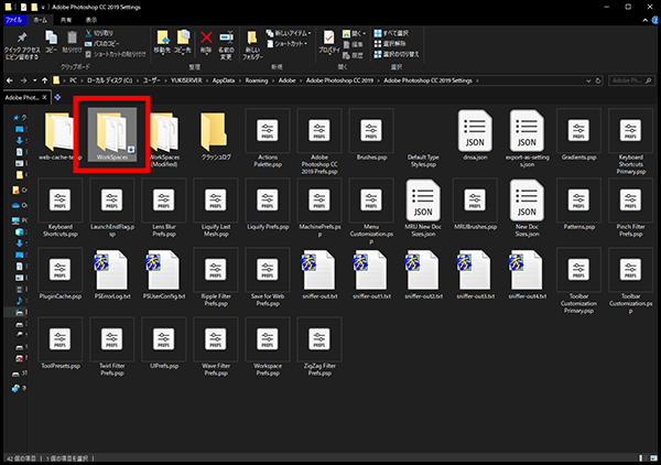 →「Roaming」→「Adobe」→「Adobe Photoshop CC2019」