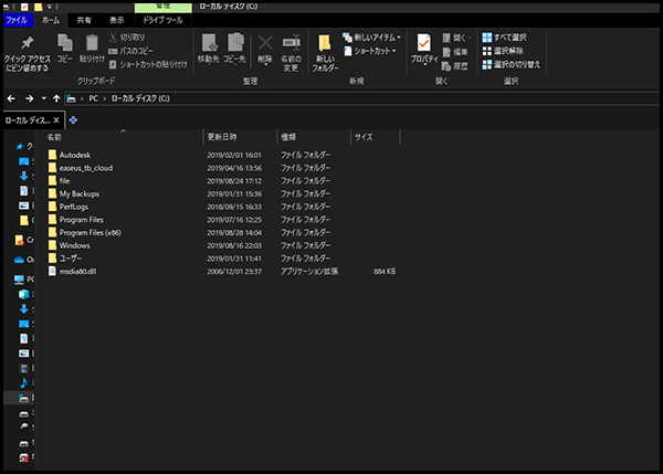 ドライブ名(C:)をダブルクリックで開きます。