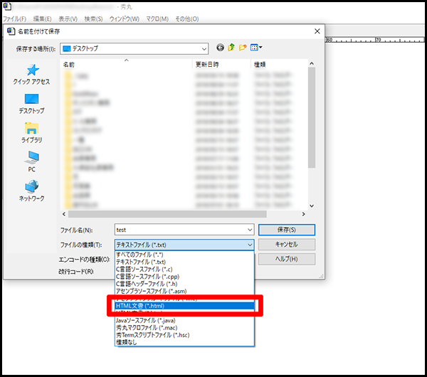 「txt」の部分を「html」に書き換えたら、エンターを押します。